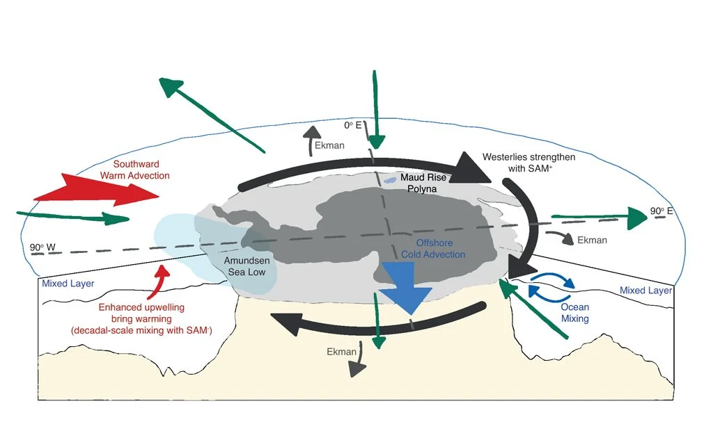 Eayrs, Clare, David Holland, Diana Francis, Till Wagner, Rajesh Kumar, and Xichen Li. 2019. Understanding the Seasonal Cycle of Antarctic Sea Ice Extent in the Context of Longer-Term Variability. Reviews of Geophysics 57 (3): 1037–64. https://doi.org/10.1029/2018RG000631.